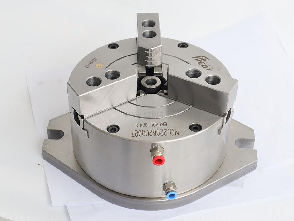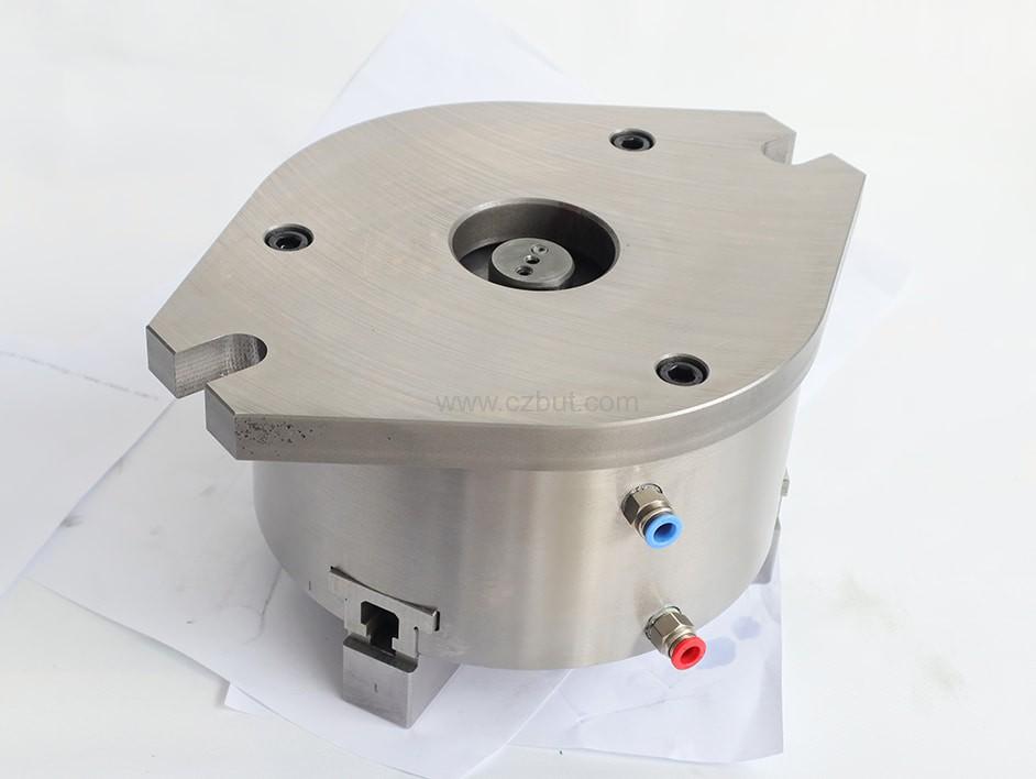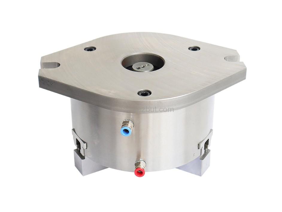 該產(chǎn)品內(nèi)置動(dòng)力氣缸,從側(cè)面供氣來實(shí)現(xiàn)夾緊和松開,免去拉桿結(jié)構(gòu),適用于鉆、銑床及加工中心等機(jī)床使用。