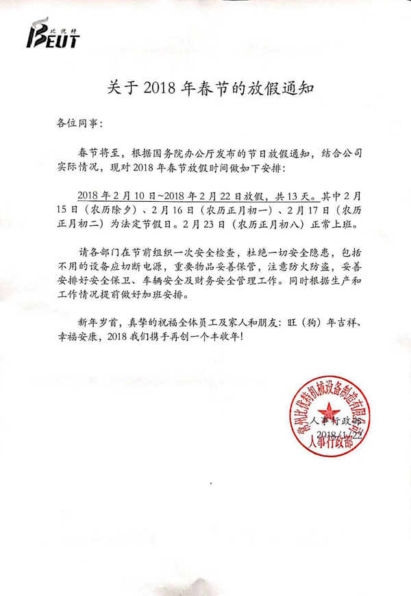 閱讀次數(shù):2811【中國機(jī)床商務(wù)網(wǎng)欄目 名企在線】神犬續(xù)天雞,九州吟雪尤吟歲;新春臨大節(jié),萬眾拜年喜迎新。金雞司晨去歲已逝,忠犬守夜喜迎新年。值此普天同慶、萬眾共賀之際,常州比優(yōu)特機(jī)械設(shè)備制造有限公司(以下簡稱“常州比優(yōu)特”)攜全體員工祝愿機(jī)床行業(yè)辛勤工作的全體同仁、給予了比優(yōu)特巨大支持的新老用戶以及合作伙伴在新的一年里一帆風(fēng)順、萬事如意、闔家團(tuán)圓、幸福美滿。